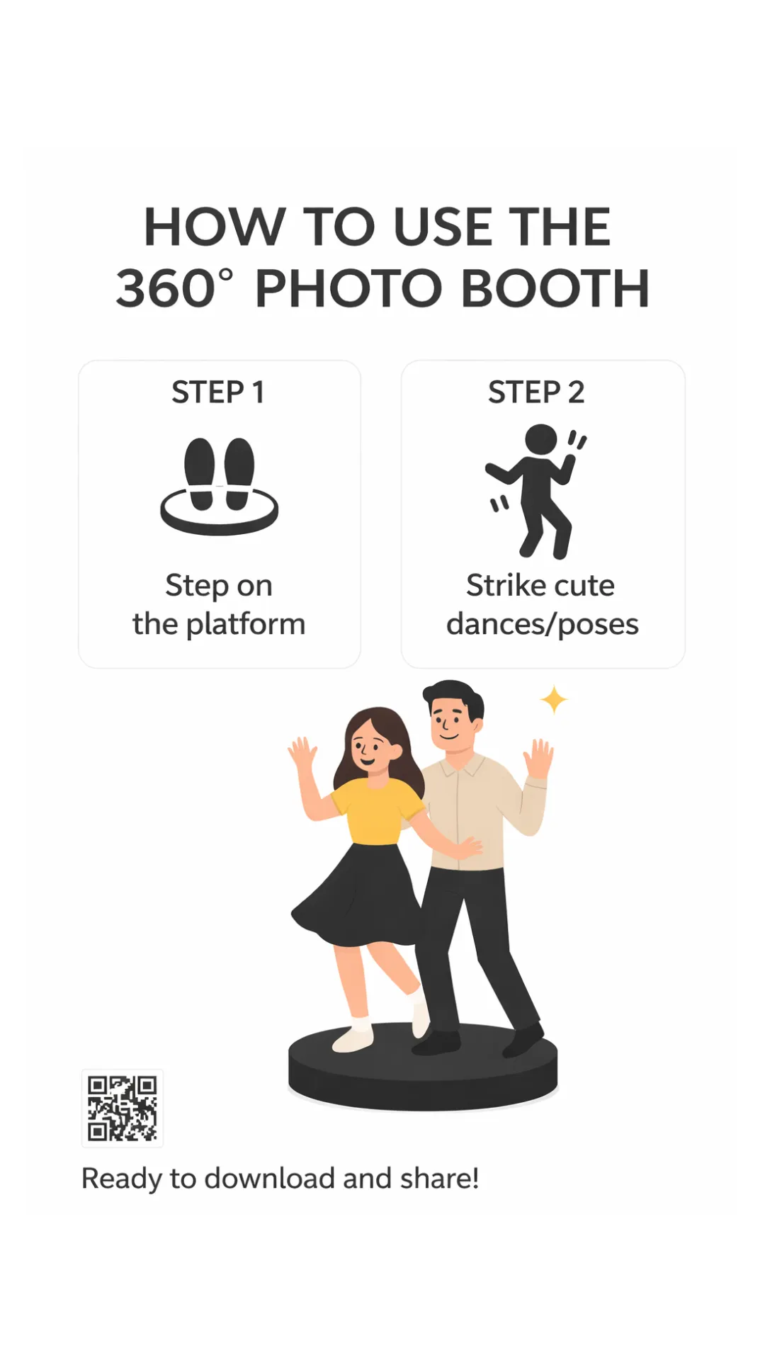 Enjoy a seamless 360° experience with one of our friendly attendants running the booth for up to 2 or 3 hours — ensuring everything runs smoothly and your guests have the best time!